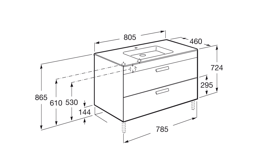 Roca Debba Unik Standard 800 alsószekrény két fiókkal és mosdóval, fehér A855968806Roca