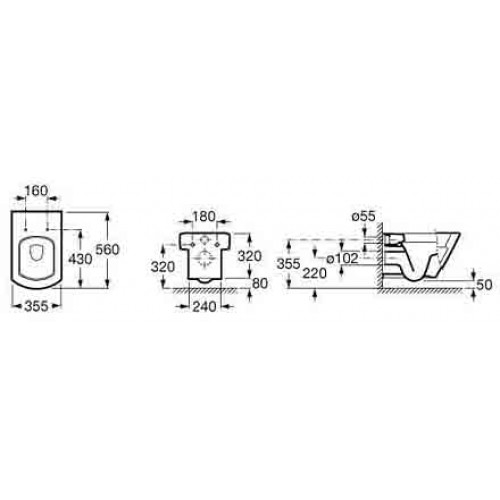Roca Tura perem nélküli fali wc, fehér A346697000