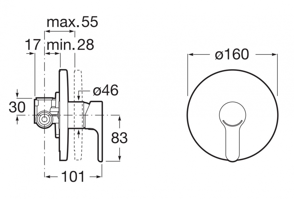 Roca L20 falsík alatti zuhany csaptelep, króm A5A2A09C00Roca