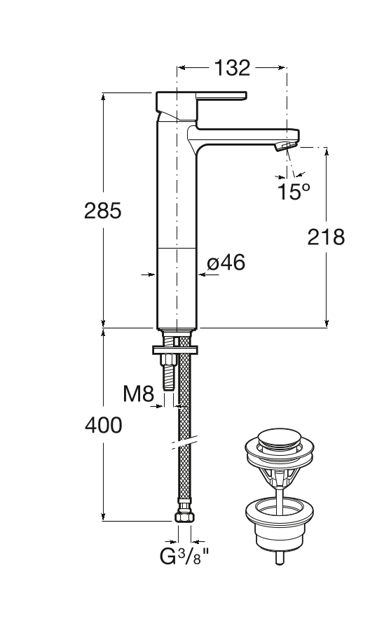 Csaptelep test magassága (zárt állapotnál): 28,5 cm