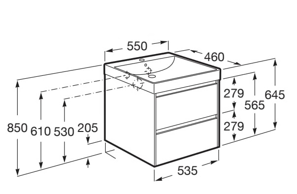 Laufen Meda alsószekrény 550 mm, 2 fiókkal, H810112 mosdóhoz, matt fehér H4215620112601