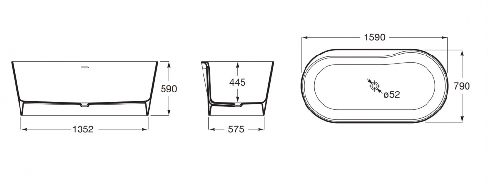 AQUALINE TAJO szabadonálló kád, 170x80cm, akril E1980