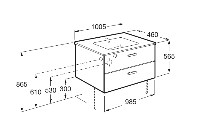 Marmy CODE 100x46x50 függesztett alsószekrény, 2 fiók, laminált (mosdó nélkül) Honey Oak 20 20 22 10 00 85