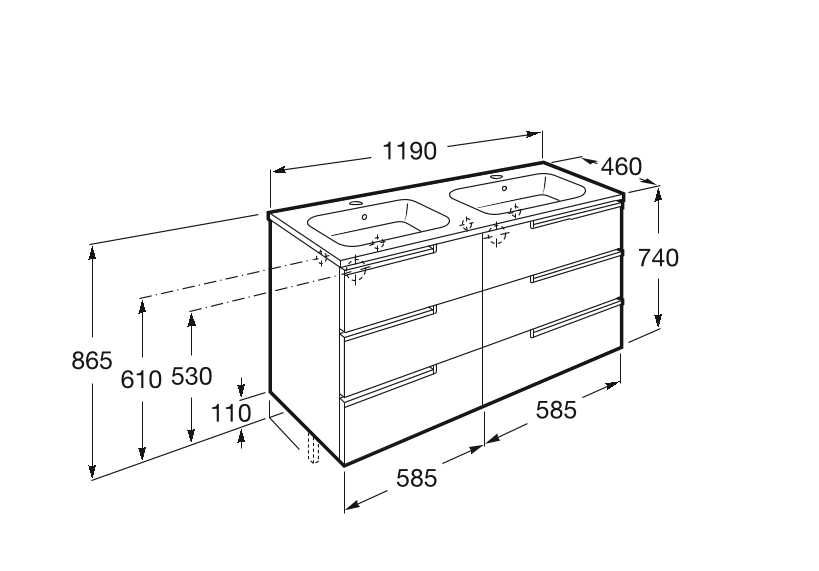 Roca Victoria-N Unik alsószekrény dupla mosdóval 120 cm magasfényű fehér A855835806