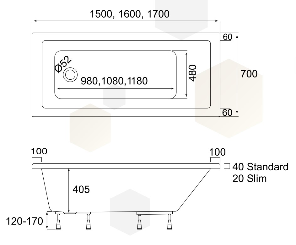 Roltechnik EasyBath Slim 170x70 cm egyenes kád RT2-17070Roltechnik