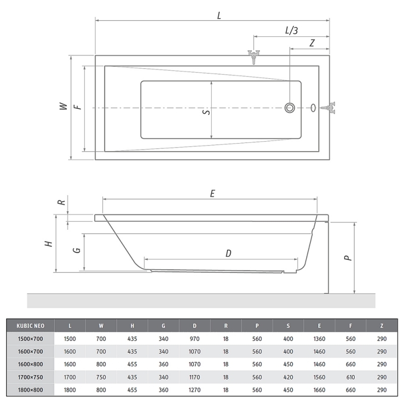 Roltechnik Kubic Neo 170x75 szögletes akril kád (9330000)