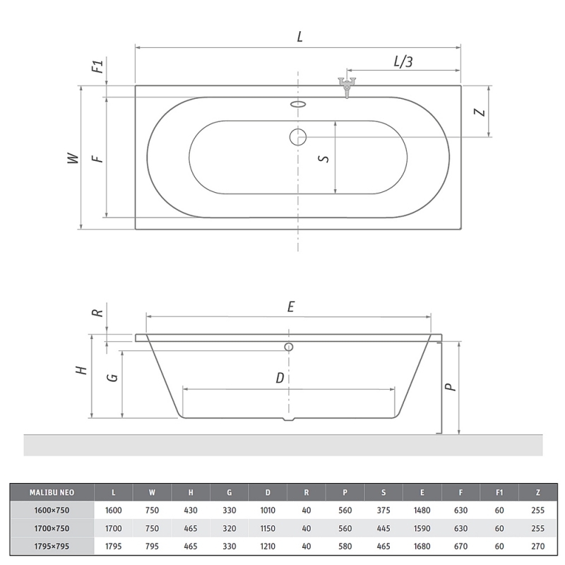 MALIBU NEO szögletes akril kádhoz ajánlott oldallap