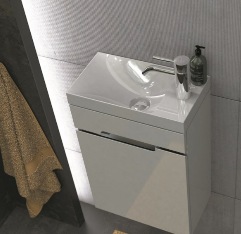 Geberit Selnova Square 50 alsó szekrény kézmosóhoz egy ajtóval, magasfényű fehér 502.738.00.1