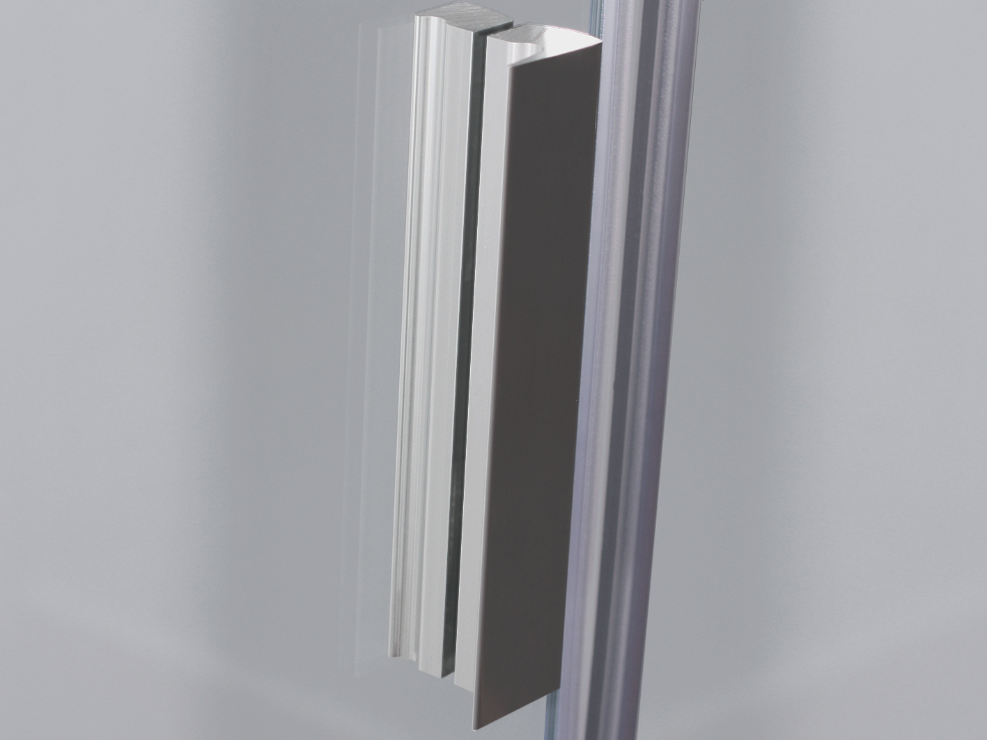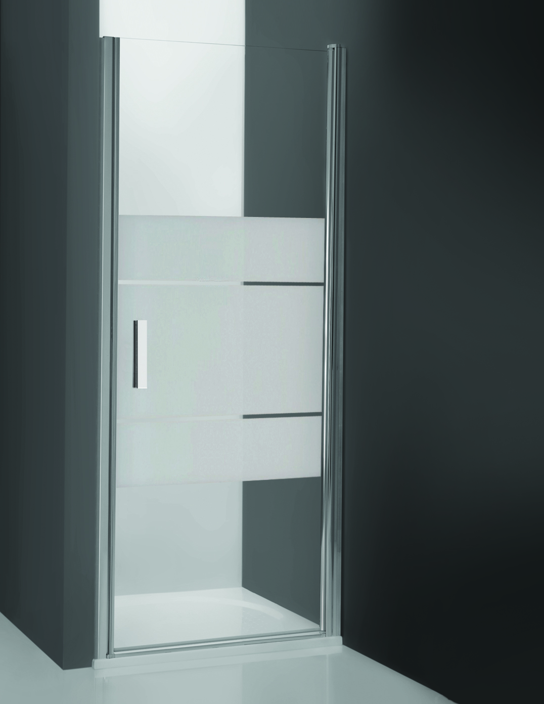 Egyszárnyas nyitható zuhanyajtó két fal közé 6 mm vastagságú biztonsági üveg új formatervezett kapaszkodó kifelé-befelé nyitás nyitáskor az ajtó felfelé is elmozdul akadálymentes belépés lehetősége NANOGLASS hidrofób üvegfelület kezelés Ezüst vagy Brillant profillal Belépési méret: 108 cm Magasság: 201,2 cm