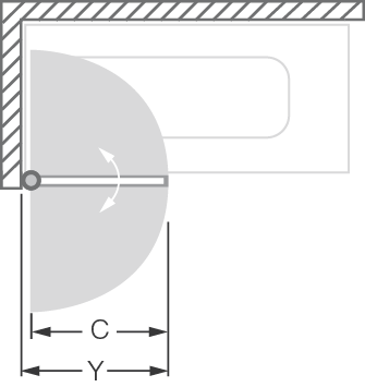 Roltechnik TV1 kádparaván 6 mm-es biztonsági üveg Magasság: 140 cm Jobbos és balos C (műszaki rajz) : 70-es=62 cm, 75-ös=67 cm, 80-as=72 cm