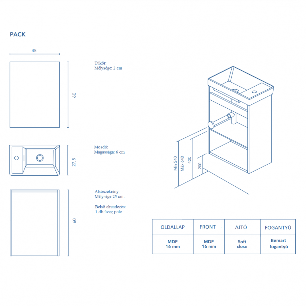 Wellis MyLine Spa Nina 60 komplett fürdőszobabútor szett SZP-WE16 (WB00277, WB00278, WB00279)