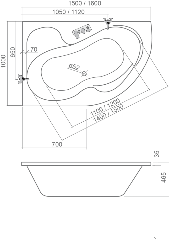 Aqualine Cidlina 160x105 cm aszimmetrikus kád (160x105 cm, beépíthető / balos, #G3615)