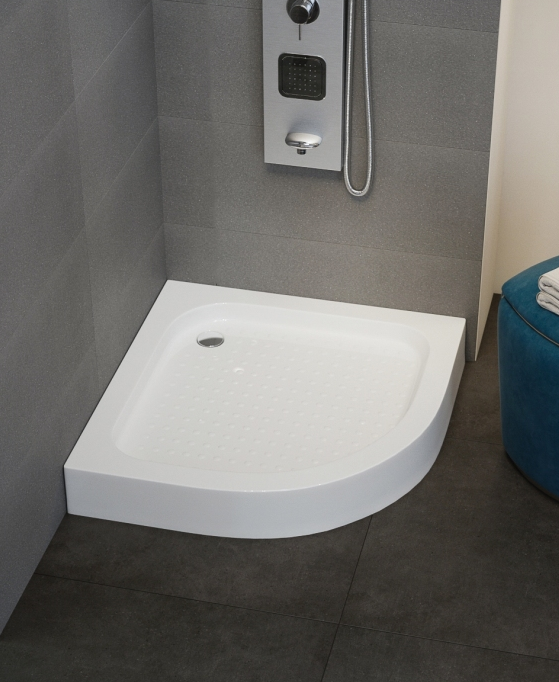 Sanimix negyedköríves akril zuhanytálca, fém lábbal 90x90x15 cm 21.03.05Sanimix