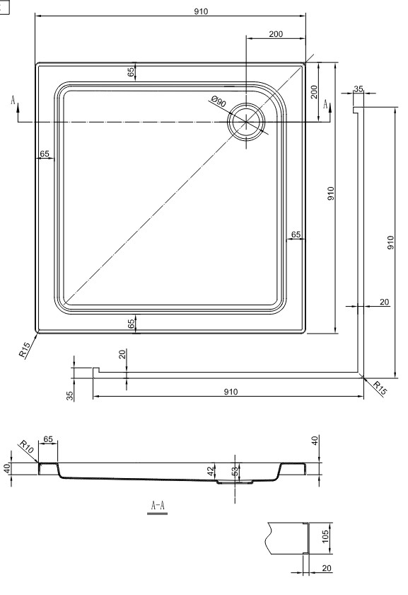 Riho Zürich 248 80x80 cm (DA56) Beépíthető zuhanytálca (DA5600500000000) D001006005