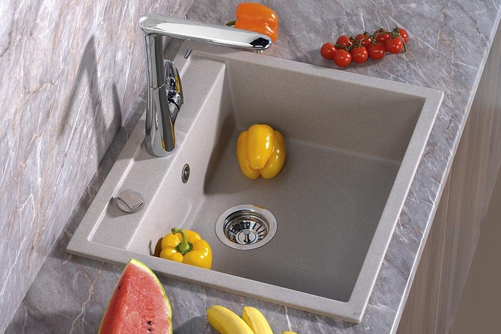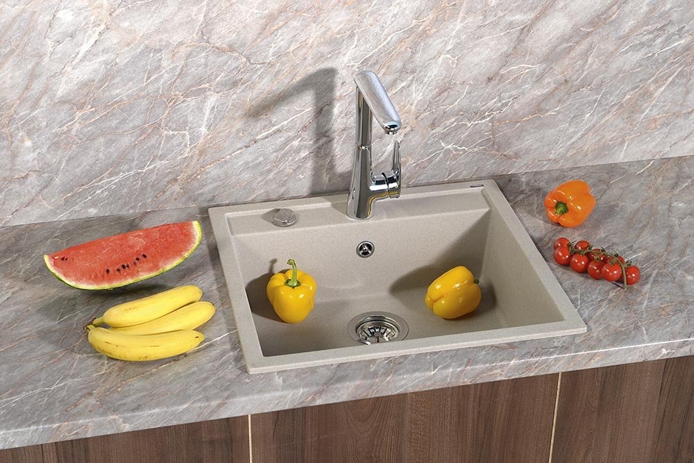 Sapho 57x51 cm egymedencés gránit mosogató, bézs GR1002
