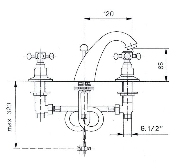 Bugnatese Rodos Fal alatti mosdó csaptelep 19 cm kifolyóval klikk-klakk leeresztővel, króm 7365SCCR