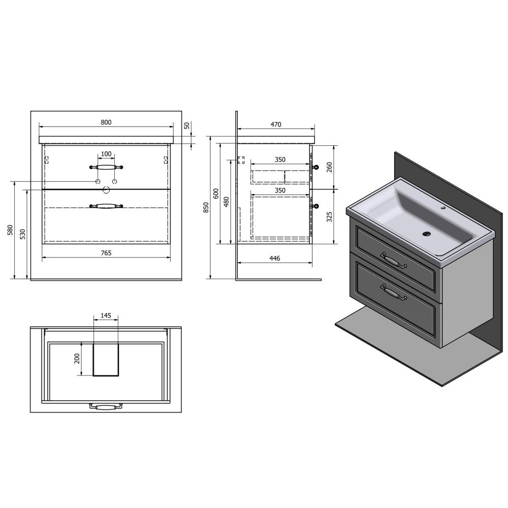 Sapho RETRO mosdótartó szekrény, 73x80x46,5 cm, antik fehér (1655)