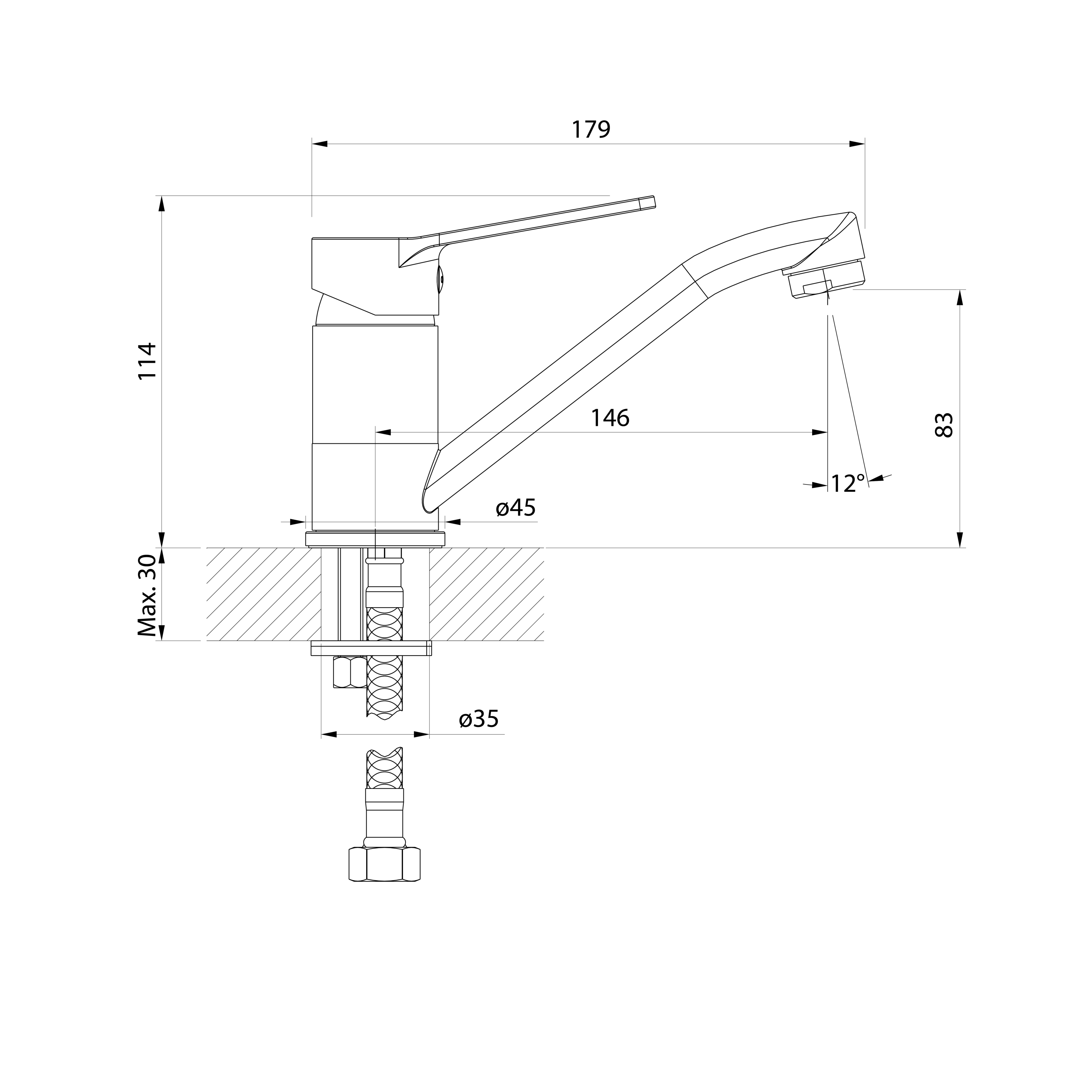 Csaptelep test magassága (zárt állapotnál): 11,4 cm