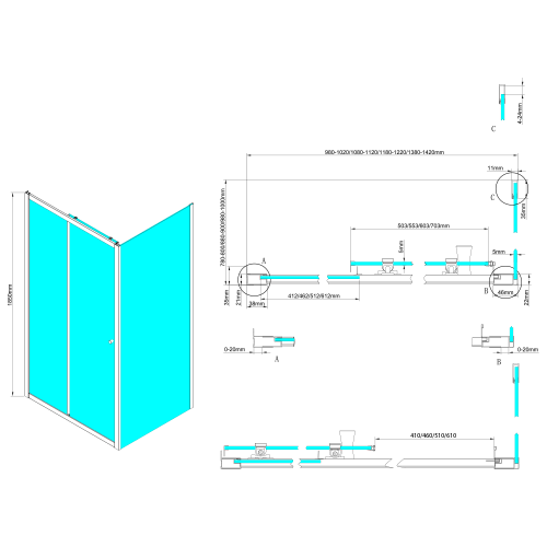 Sanotechnik íves aszimmetrikus zuhanykabin, T790C