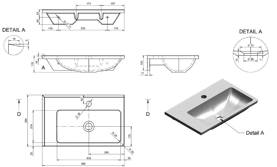 Duravit D-Neo mosdó 60x44 cm csaplyuk nélkül WonderGliss bevonat 23666000601