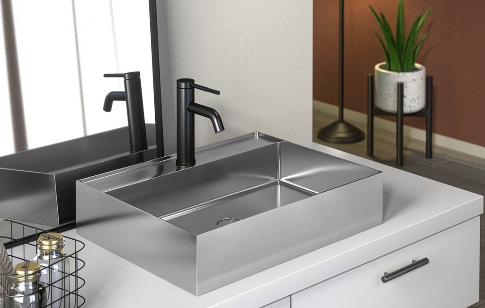 Sapho AURUM 55x42 cm mosdó klik-klak lefolyóval, szálcsiszolt inox AU402Sapho