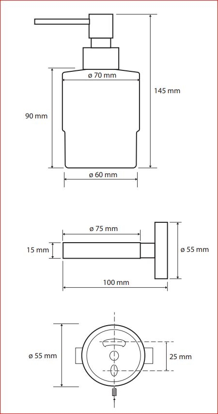 Sapho BEMETA HEMATIT fali szappanadagoló, 75x145x100mm, 200ml (159109102)