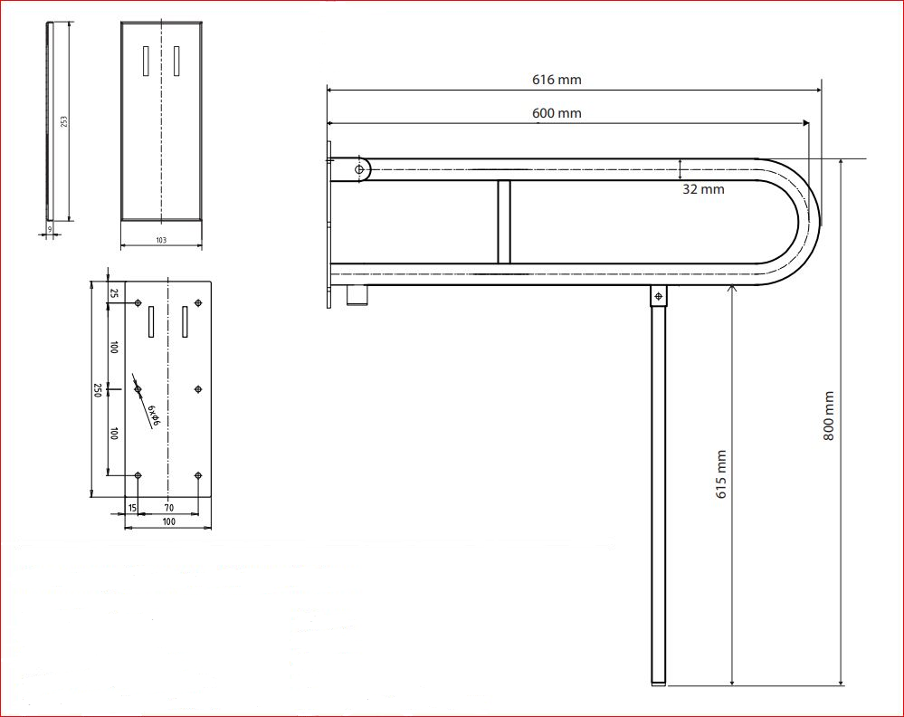 Sapho BEMETA HELP Felhajtható kapaszkodó, U-típus, WC papírtartóval, támasztékkal, 600mm, matt 301406272N