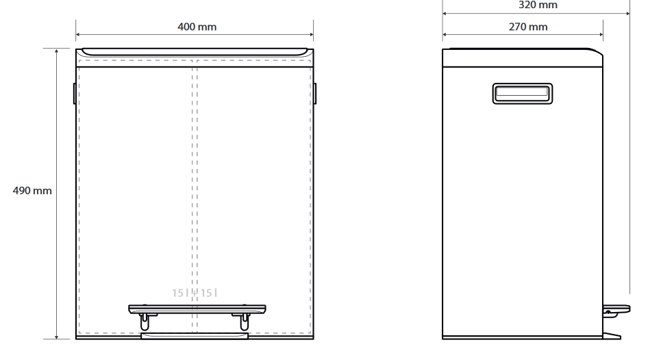 Sapho BEMETA HOTEL Szelektív hulladékgyűjtő, soft close, 404x492x321mm, 15l + 15l, inox 137115165Bemeta