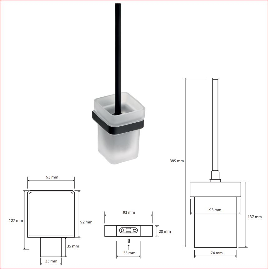 Sapho BEMETA NERO WC kefetartó, fekete kefével, 93x385x127mm, fekete 135013010Bemeta