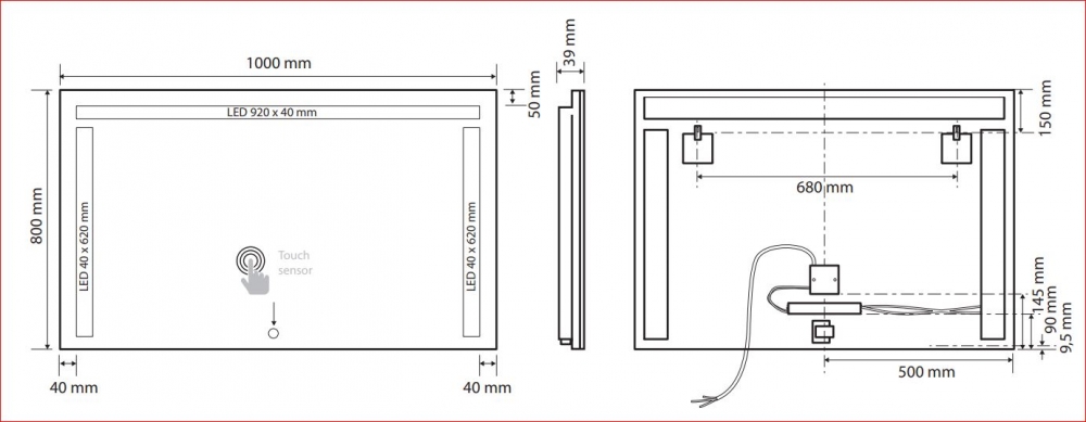 AQUALINE LED tükör világítással, billenő kapcsolóval, 60x80cm ATH6