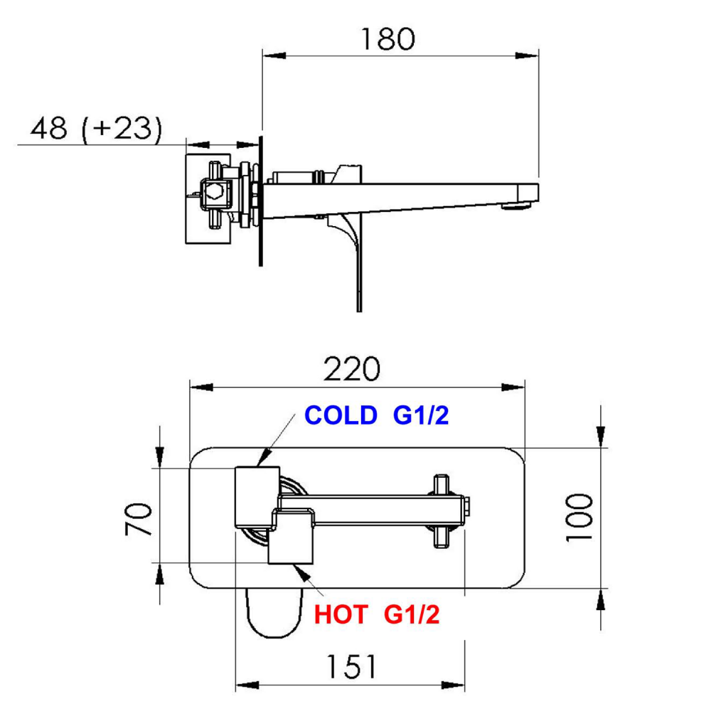 Bugnatese Simple fali mosdócsaptelep 21 cm kifolyóval, króm 6646CR