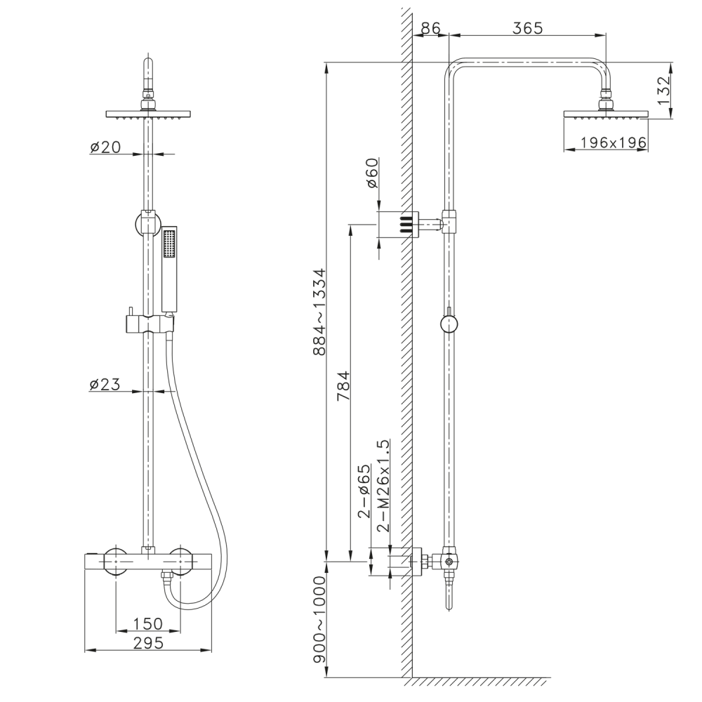 Sapho PAX zuhanyrendszer, matt fekete XA139/15