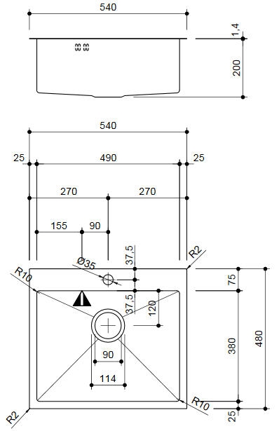 Sapho AQUALINE rozsdamentes mosogatótálca, 48x16x48cm (AQ4848B)
