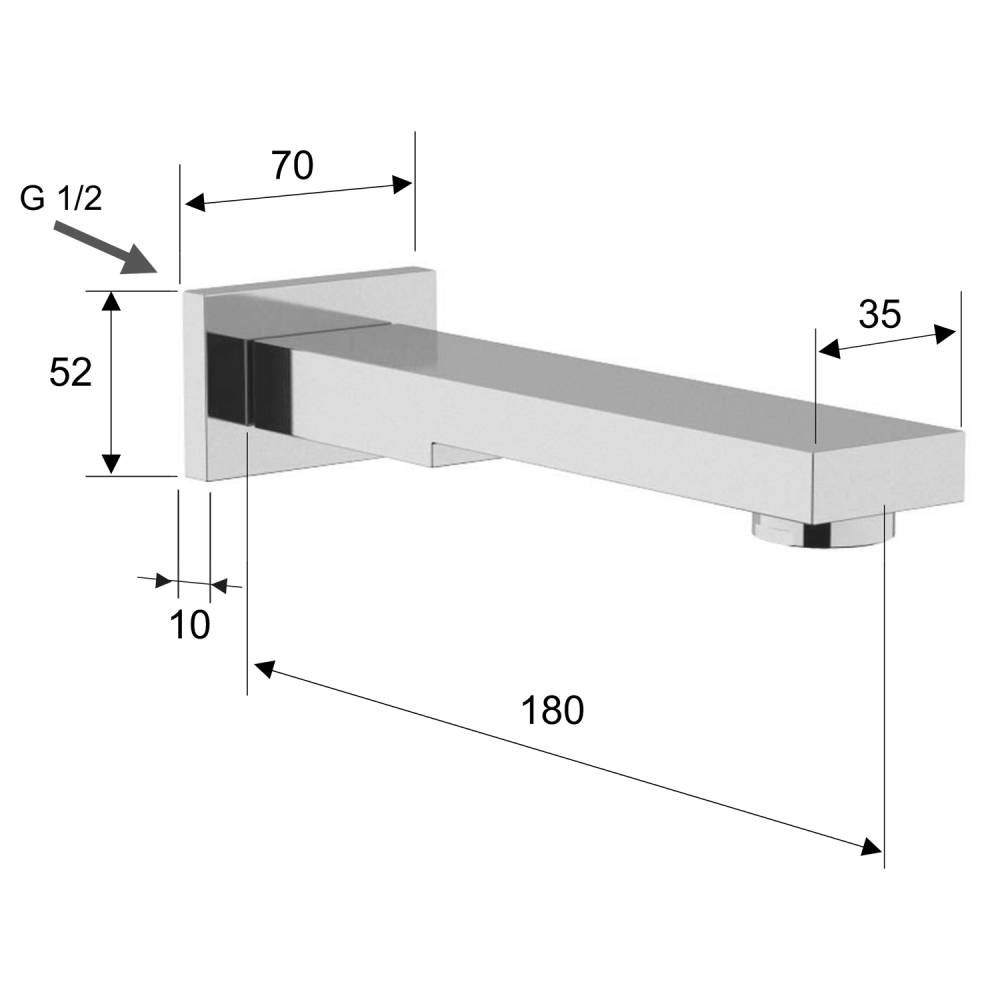 BUGNATESE szögletes kádbeömlő 4 és 5 üléses kádakhoz, króm 19316CR
