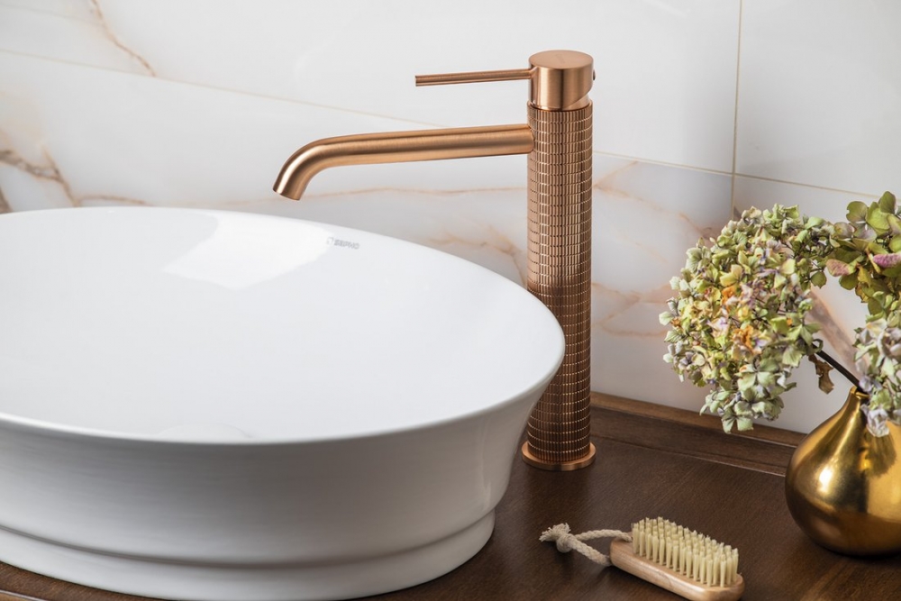 Sapho FLAWO magasított mosdó csaptelep, matt rózsaarany FR678G | SzaniterPlaza.hu - Szaniter webáruház, fürdőszoba felszerelés, csaptelepek, mosdók, zuhanyok, akciós árak.