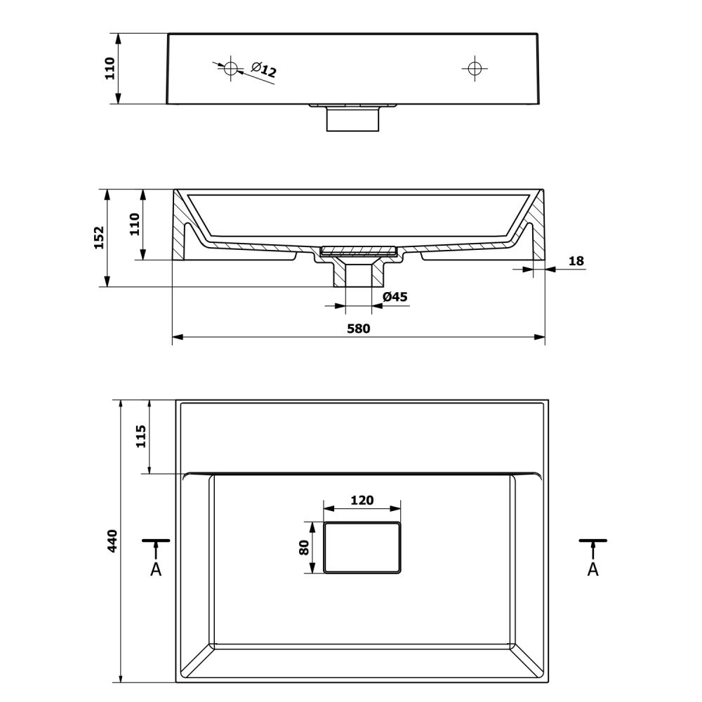 Sapho SIDRA 71x46 cm mosdó, matt fekete SD071B