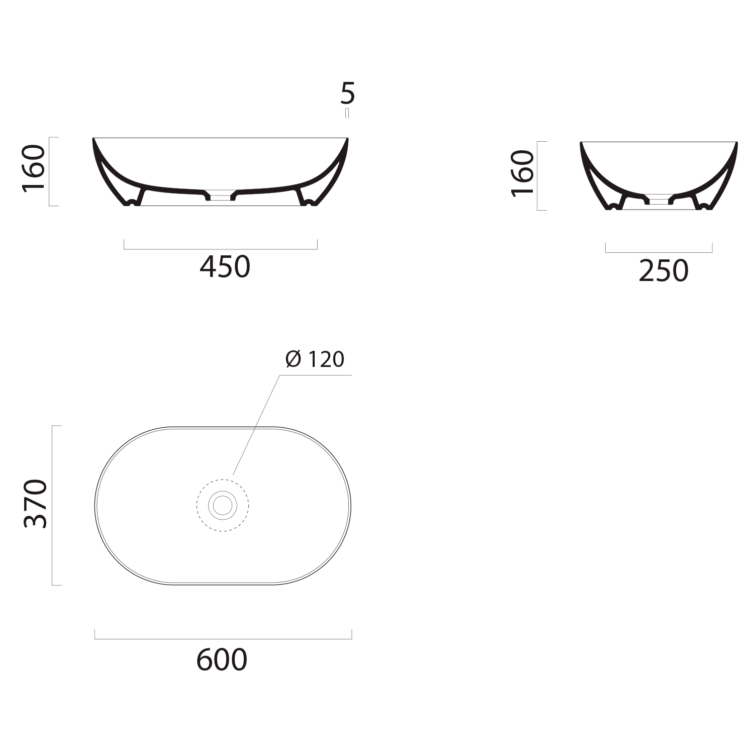 Sapho BLOK 55x37cm kőmosdó, matt marquin 2401-51