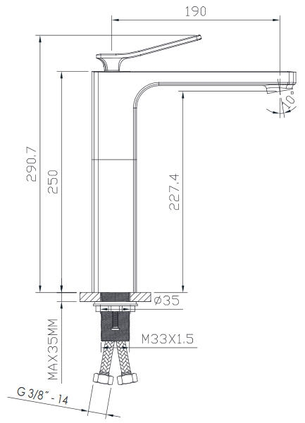 Sapho JUMPER magasított csaptelep, leeresztő nélkül, króm JM006
