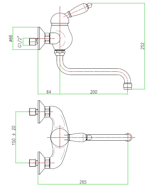 Aqualine KASIOPEA fali mosogató csaptelep, króm (1107-13)