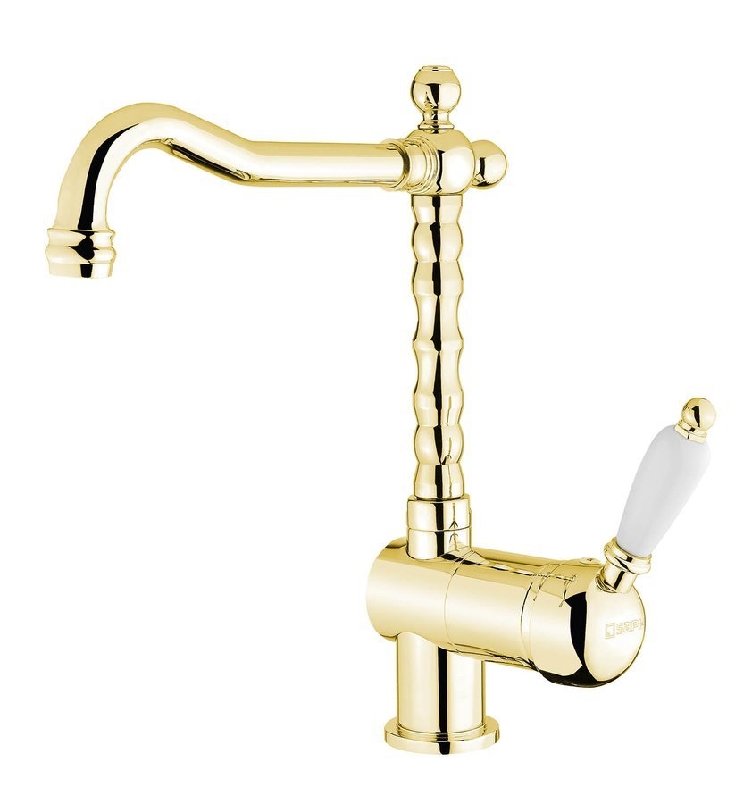 Sapho KIRKÉ WHITE Mosogató-csaptelep, fehér karral, arany (KI14BZ)