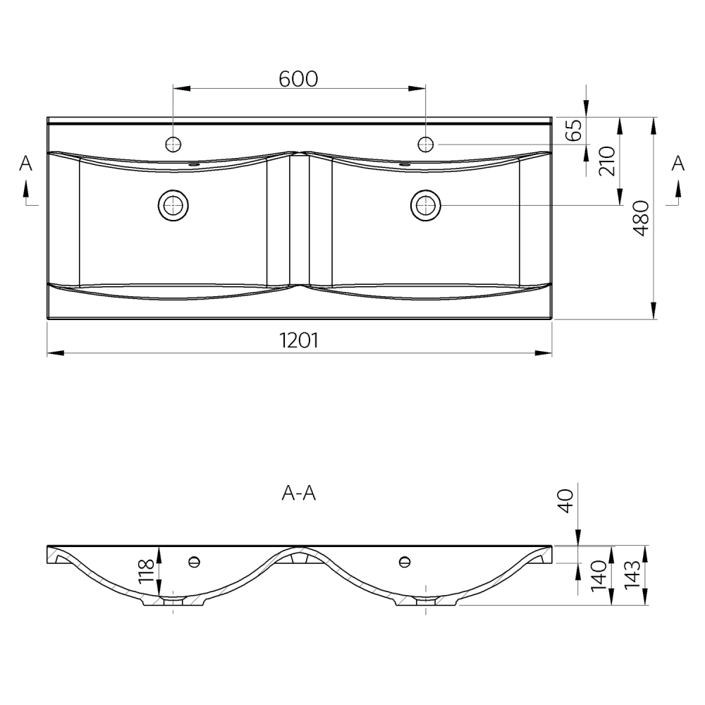 Sapho SLIM 120x46 cm dupla mosdó, fehér 1601-120