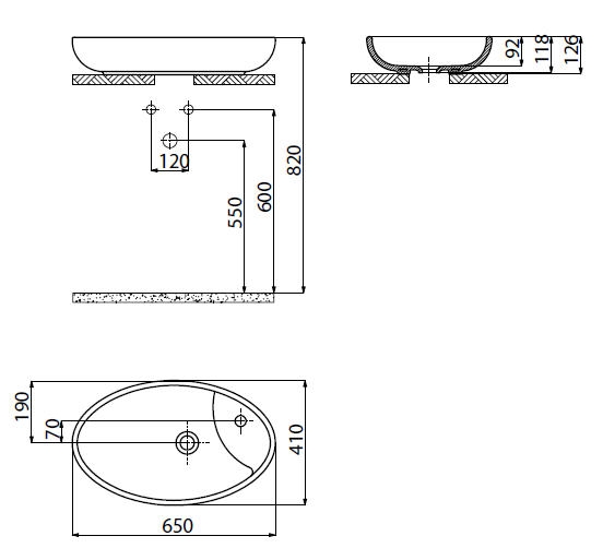 Sapho MINIMAL ovális mosdó 64,5x40,5x12 cm (MN065)