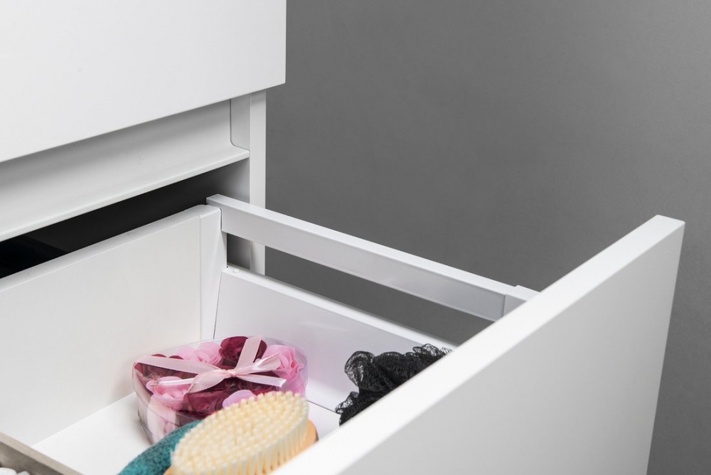 Opcionálisan rendelhető: mosdó, cserélhető díszléc (fiókok között), törölköző tartó, fiók rendező, bútorláb, leeresztő és szifon