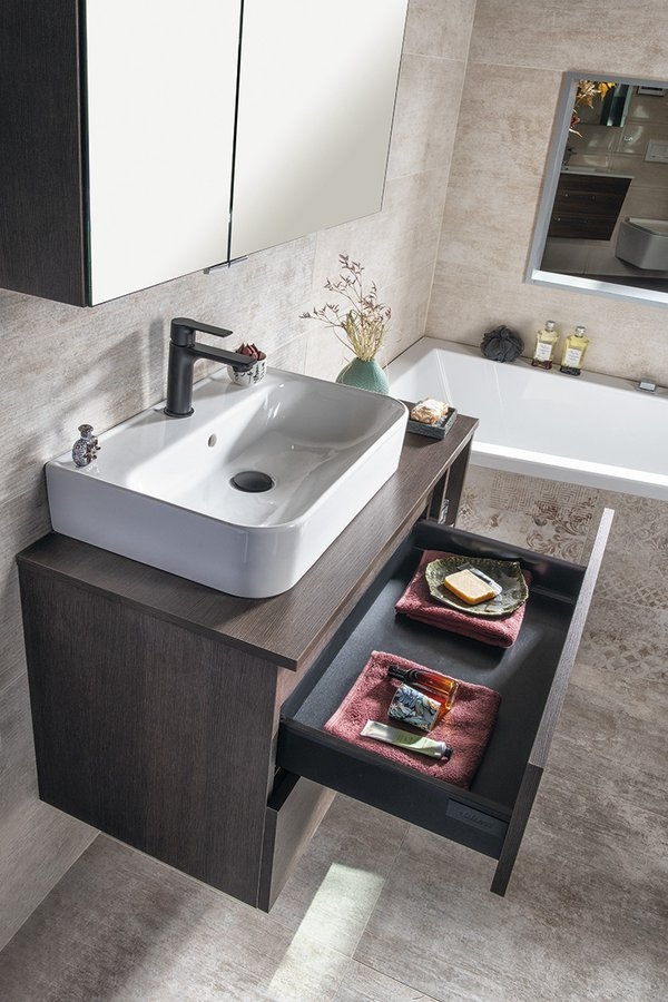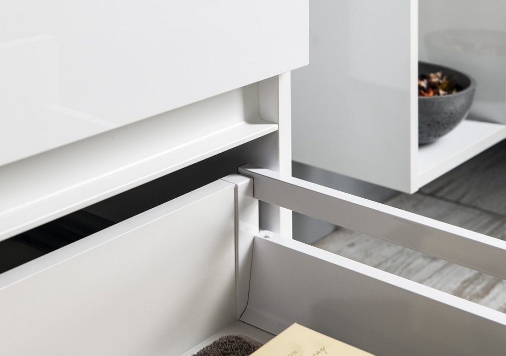 Opcionálisan rendelhető: mosdó vagy pult, kiegészítő szekrény, cserélhető díszléc (fiókok között), törölköző tartó, fiók rendező, bútorláb, leeresztő és szifon