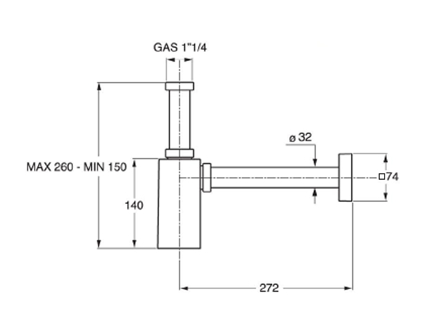 Ferro hengeres búraszifon G5/4x32 mm, króm S282