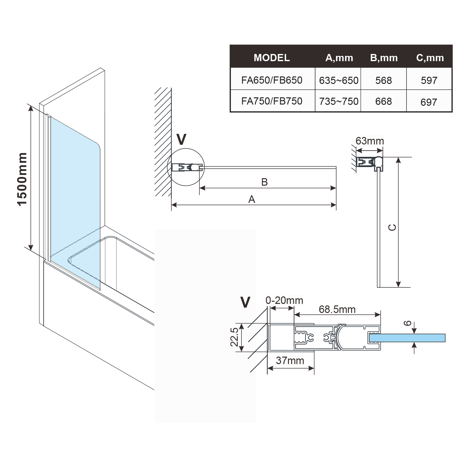 Sanotechnik egyrészes kádparaván 85x150 E85150C