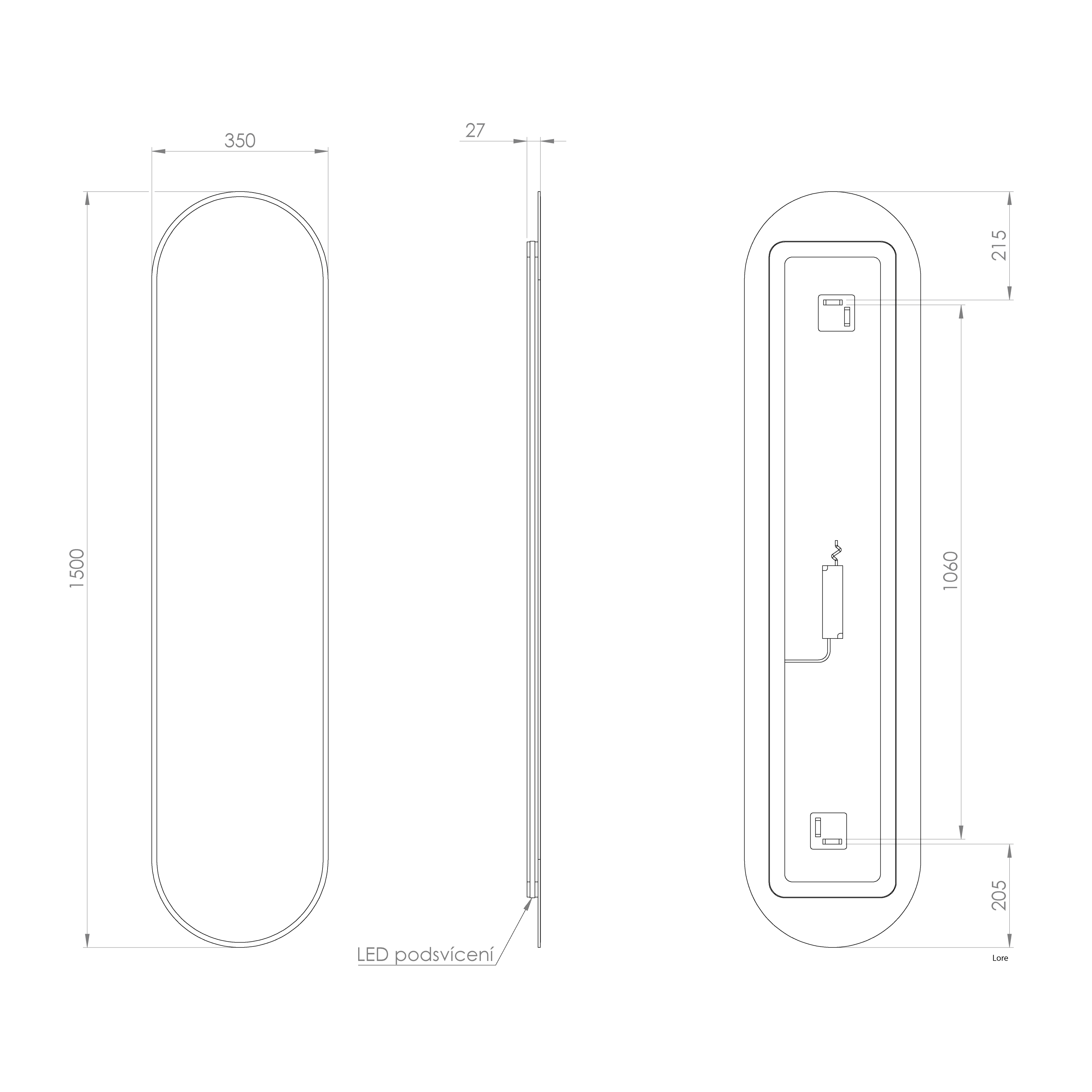 Sapho SHARON LONG 35x150 cm LED tükör, matt fekete 30595CISapho