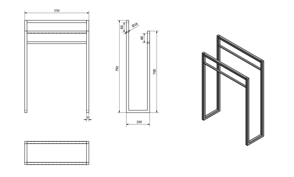 Sapho SKA törölközőtartó, matt fekete SKA301Sapho
