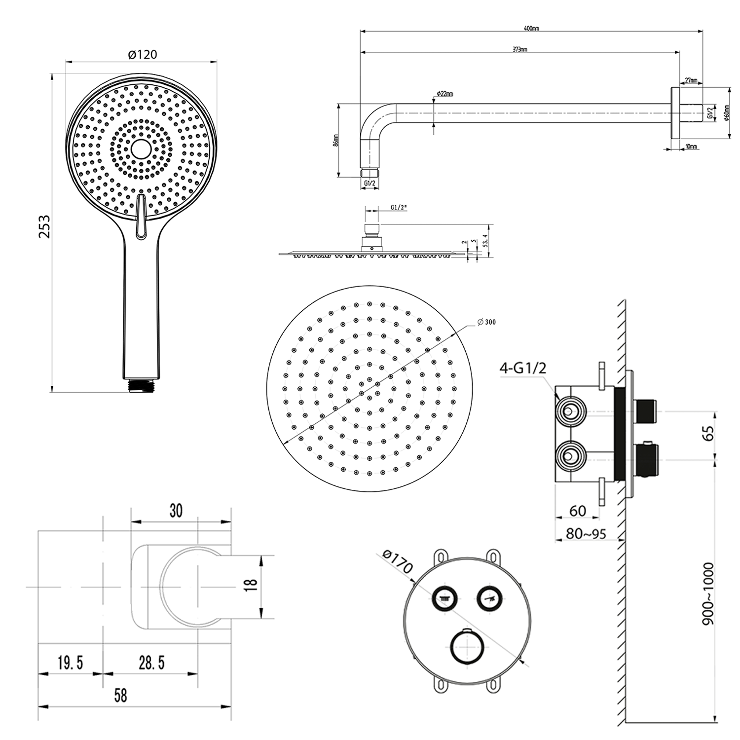 Grohe Eurosmart falsík alatti zuhanyrendszer Tempesta 250 fejzuhannyal 25288000