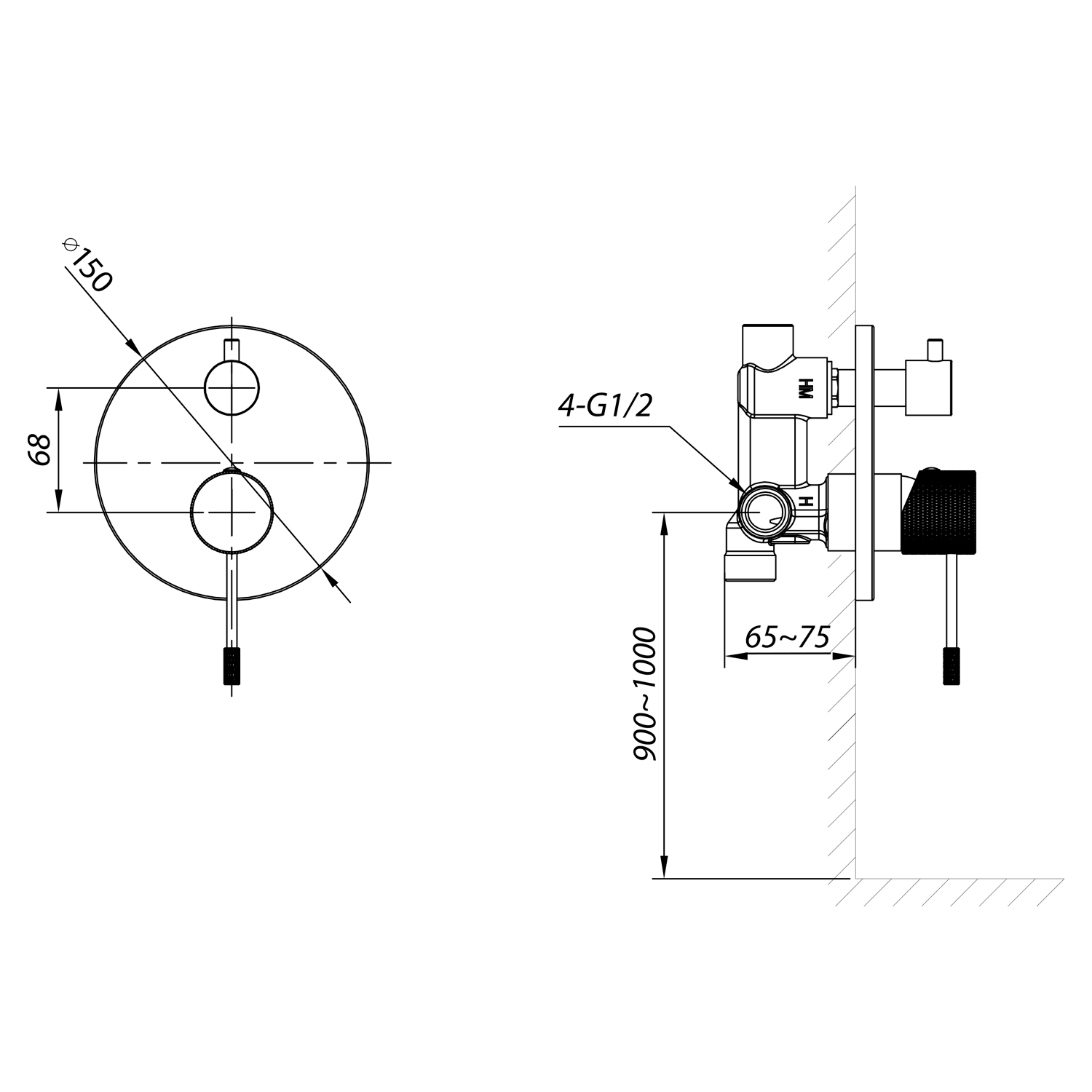 Sapho SOLARIS 2-irányú falba süllyesztett csaptelep, matt fekete/króm WD042BC